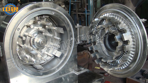 萬(wàn)能粉碎機(jī)利用活動(dòng)齒盤(pán)和固定齒盤(pán)見(jiàn)的高速相對(duì)運(yùn)動(dòng),使被粉碎物經(jīng)齒沖擊,摩擦及物料彼此間沖擊等綜合作用獲得粉碎。本機(jī)結(jié)構(gòu)簡(jiǎn)單、堅(jiān)固、運(yùn)轉(zhuǎn)平穩(wěn)、粉碎效果良好,被粉碎物可直接由主機(jī)磨腔中排出、粒度大小通過(guò)更換不同孔徑的網(wǎng)篩獲得,另外該機(jī)為全不銹鋼。機(jī)殼內(nèi)壁全部經(jīng)機(jī)加工達(dá)到表面平滑,改變了以前機(jī)型內(nèi)壁粗糙、積粉的現(xiàn)象,使藥品、食品、化工等生產(chǎn)更符合國(guó)家標(biāo)準(zhǔn),達(dá)到GMP的要求。